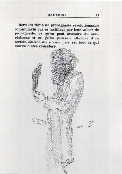 Scénario inédit, précédé d’un abrégé d’une histoire critique du cinéma et suivi de Guillaume Tell, Ballet portugais, Edition des Cahiers libres. Tiré à 623 exemplaires dont 3 sur Japon Impérial, numérotés de 1 à 3, 20 sur Hollande Van Gelder, numérotés de 4 à 23 et 600 sur vélin Outhenin-Chalandre, numérotés de 24 à 623, (in-16), 61 p.. 12 juillet 1932. Dessin de Salvadore Dali