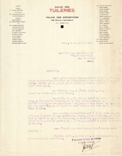 Lettre du 17 juillet 1929, Salon des Tuileries